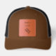 Custom Leather Patch Hat, Sytle: Adult Retro Trucker Cap, Color: Heather / Black, Shape: Circle