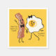 If you love breakfast, especially bacon and eggs, this design is for you! Featuring a funny retro style slice of bacon with a bow tie and sunny side up fried egg with a bow in her hair. They are smiling at each other and holding hands. Customizable message. PinkInkArt original!