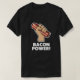 My 11 yo wore adult XL (5’7” 165#). The 8yo is small framed. She wore adult small and tied it in the back. Grandma wore adult large with long sleeve shirt underneath. Tall girl adult medium. Dark haired male adult large. Good quality dark Heather gray, Gildan brand shirt. -it was next up from basic choice and cost about $20 per shirt. Not too thick or thin. Washed and dried well, no major shrinkage. Not see-through. Can wear a bra under it fine. Screen print is just as shown and well done, front and back.
