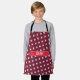 Great color and even though I ordered the kid size, it covers well enough to use during the holidays. I am not a big woman and prefer a shorter apron. I stand 5"6" and the length of the garment goes to mid-thigh. The tie straps fit well at my waist and even though there is no neck strap adjustment, the opening is plenty big enough. I am happy with the size and fit. I am sharing my apron with my 10 year old grandson, too! The color is vibrant and looks good, as shown on the website. The stitching looks strong and reinforced. Photographed is front side and back side of the apron, reinforced straps and coloring. My phone camera may not be the best at showing the details.