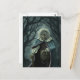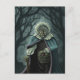 fun & whimsical custom post cards with a dark classic fairytale illustration from snowwhite & the seven dwarves by the brothers grimm. with the evil queen stephmother turned into an old & ugly looking witch walking trough a dark & scary forest with a basket of poisened apples. exclusively by frank glerum art.