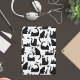 This hand drawn pattern is a compilation of furry black felines knocking various things over - coffee mugs, succulents, TV remotes and vases of flowers. A funny pattern for those who love their cats, even though they are sometimes jerks who knock stuff over.