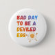 This playful and humorous design features the phrase "BAD DAY TO BE A DEVILED EGG" rendered in a bold, distressed, rainbow-gradient font. Below the text, a delightful cartoon fried egg character with outstretched arms and a wide-eyed, slightly panicked expression perfectly illustrates the pun. It’s a witty graphic, ideal for those who appreciate food-related jokes, clever wordplay, and unique, eye-catching apparel or decor. Perfect for breakfast enthusiasts, culinary humor collectors, or anyone who enjoys a good laugh.
