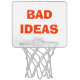 "Bad Ideas" Over Trash Basket Basketball Hoop is great for the office, kid's wastebasket, etc. Text color can be changed as well as the font. Can say whatever you like!