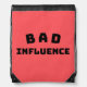 #BadInfluence #SassyStyle #DrawstringBackpack #BoldAndFunny #StatementBag #GymWithAttitude #ZazzleDesign #CustomBackpack #PartyVibes #FestivalReady #RebelGear #BackpackGoals #FunnyGift #StreetStyle #BagOfTrouble #SassyAndStylish