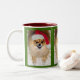 Three photographs of Pomeranian dog wearing a Santa hat.