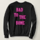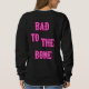 Elevate your style with our Bad to the Bone T-shirt sweatshirt! The front showcases a striking pink skull adorned with delicate butterflies and intricate roses, adding a touch of femininity to your edgy look. Turn heads with this captivating design that effortlessly combines toughness with beauty. On the back, 'Bad to the Bone' is boldly written in pink font, making a bold statement about your fearless attitude. Crafted with comfort and style in mind, this shirt is perfect for those who dare to stand out from the crowd.
