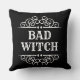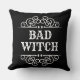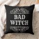 Are you a good witch or a bad witch? Celebrate Halloween in style with this custom "Bad Witch" typography throw pillow design that can be customized with your preferred Good or Bad or Other Witch text. White background (can be customized) with black decorative text and scroll design.