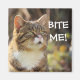 Humorous badass cats with attitude postcards and gifts."BITE ME!" slogan cat fridge magnet.