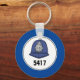 A fun gift for the best policeman. Gift key fob for a Police Constable with Police Helmet and Badge Number. Police helmet design key ring. Police Helmet illustration on a keyring.