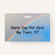 Pawprint in upper left, with rainbow cutting from corner to corner below. Front shows Name and title, back (minus paw print) shows business name and location.