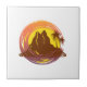 Badge with tropical volcano scenery and palm trees ceramic tile