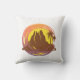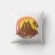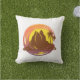Badge with tropical volcano scenery and palm trees outdoor pillow