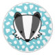 Ceramic knob for the nursery with a badger against a blue and white pattern.