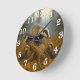 Badger family in misty woods round clock