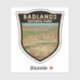 Badlands digital watercolor artwork design. The park’s dramatic landscapes span layered rock formations, steep canyons and towering spires. Bison, bighorn sheep and prairie dogs inhabit its sprawling grasslands.