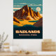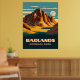 Display the clay-colored sedimentary rocks and mountains of Badlands National Park in South Dakota.