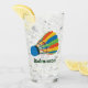Badminton Design Drinking Glass with customizable text and background color.