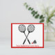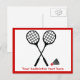 Badminton gifts, racquet and shuttlecock custom postcard that showcases a minimalist black icon of two badminton racquets, a shuttle and a red border around. Personalize it and change text with monogram, name or your message. The perfect gift ideas for the badminton player or lover.