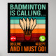 Badminton Is Calling Shuttle Lover Player Coach Gr Poster