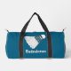 Badminton Shuttlecock Design Duffel Bag with customizable text. and background color. Other bag options available in drop-down menu.