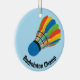 Badminton Shuttlecock Design Round Ornament. e=with customizable background color and text, on both sides.