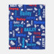 Sporty badminton shuttles on a dark blue court background originally designed text name personalized blanket. This typographical racket sports-themed patterned blanket has red, blue, and white text and can be customized with your own name, currently reads Bailey. Contact me for longer name requests. Original art and design by www.mylittleeden.com
