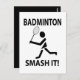 Badminton Smash It Sports Badminton Postcard designed by Nisha Prabhu. Smash your way to victory with this stylish badminton postcard! Featuring a dynamic design and high-quality printing, this postcard is perfect for showcasing your love for the sport of badminton. Whether you're a casual player or a competitive athlete, this postcard is sure to make a statement. Get your hands on one today and show off your passion for badminton in style!
