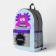 This Bag Buddy bright pink monster backpack bag is perfect for any child or adult that likes a little fun. The light blue background features a cute and funny pink monster holding a sign that tells the world who he belongs to. Personalized with a name or initials on the gray and black front pocket, and perfect for books, school, toys, clothes, sports gear, travel, or anything that needs to be carried. This fun and playful custom design is a part of the 'Bag Buddy' series. Great gift idea for birthday or any special occasion.