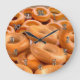 Funny kitchen wall decor clocks with a bagels pattern and fancy clock numbers designed as a kitchen clock, clock for a bagel shop or bakery, or just a novelty for your home.