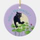 Lightweight, smooth, pure white ornament with nice sheen. Perfect size to be seen from across the room ... and to attract closer inspection! Price was great for ordering enough for the whole family! Clear, bold black design just as requested. Matches the order exactly. Just so nice!