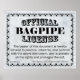 Official Bagpipe License. There are many activities involving various equipment, such as operating an automobile, airplane, etc., that require specialized training and licenses. Making music is something that usually requires training: lessons, practice, and rehearsals. Shouldn't it be required of the prospective musicians that they receive a license to operate the equipment, i.e., their musical instrument?
