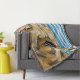 A quality printed throw has its advantages. This is a much finer weave throw than its loopier cousins, and though lighter, it is worth the investment for custom room accessorizing. The back is much prettier than the typical brown, and the fringe on the long sides very vivid, the selvage nicely done. Before photographing, I washed the throw in cold water, delicate, with a thicker woven throw the same size. On tumble dry low, this throw was dry in half the time as the other. This is a very practical quality if you use throws for furniture covers or to wrap up in frequently. The sleekness of the fabric makes it a great layer for accenting or protecting without the feeling of sitting on too much stuff. Perfect for napping or when you feel a light chill coming on. The color printing is beautiful and on this fabric, matched the design and color of my Photoshop image. This is an advantage for blending room fabrics and colors. The fringe on the short sides prints the colors from the design image and therefore varies from the side fringe. I streaked a white fractal line through the plaid pattern to give the illusion of weaving. This printed as crisp as an illusory thread, and put some white in the short side fringe, showing another advantage of print vs loomed- for artistic purposes, line lines, detail, and color integrity can be planned and preserved. My loomed throws have color limitations and more of a needlepoint texture. Print throws reproduce an exact image. The throw felt a little stiff straight out of the package, but this went away in the first delicate wash. Of course I searched the wash water for ink or bleeding and there was none.