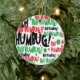 Lightweight, smooth, pure white ornament with nice sheen. Perfect size to be seen from across the room ... and to attract closer inspection! Price was great for ordering enough for the whole family! Clear, bold black design just as requested. Matches the order exactly. Just so nice!