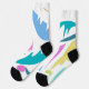 A tropical and colorful palm leaf design, rich color palette that exudes sophistication even with a playful and colorful sock like