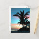 Colorful Bahama Sunset falls onto a palm tree and beach house.