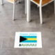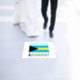 Floor decal shows the Bahamian Flag and the word BAHAMAS underneath. Above, add a name, in blue letters, for a personalized touch or customized gift of this floor decal. The flag is blue, yellow and white. Great for your Bahamas themed party or family reunion. Fun way to direct people to a family reunion, travel group or club meeting.