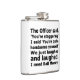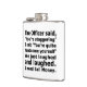Well made flask, a little better than I had expected. Flask came in clear plastic box which gave it a nice presentation when I took it out of the zazzle packaging. Image is not printed on flask but on sticker. Don't know how this will hold up I haven't used it yet. This would make a Great gift! I plan to purchase more for friends! Cheers. I thought a little brighter than computer. Very crisp, writing wasn't