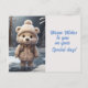 Bailey Bear is wishing you warm wishes. All dressed for winter, this cute bear is beyond adorable . Shades of tan against blues and white are a winter delight. Appropriate for all ages and genders.