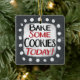 "Bake Some Cookies Today" is a cute text design in gray with black and red text. It sits on a white accent shape and cute white polka dots surrounding it.