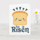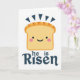 This card features a cute, simplified baked‑treat character in a rounded rectangle shape, colored in soft goldenrod and light orange 🐰. Along the top edge, a zigzag “crust” line adds texture, while several dark teal triangles rise upward like little bursts of warmth, giving the scene a cheerful, friendly energy. The face is minimal but expressive, with two small dark dot eyes, a gentle curved smile, and rosy pink cheek circles that read like a shy blush shared with someone close. Set on a plain white background, the warm tones stand out clearly and keep the focus on the character’s tender, welcoming look 🐇. Beneath the illustration, a flowing line of text sits centered near the bottom in deep blue, giving the message a graceful contrast to the simple shapes above. The spacing feels open, with plenty of white space around the character and the lettering so the design feels easy to take in at a glance. The teal triangles are evenly spaced above the zigzag top, pointing upward against the white backdrop.