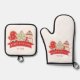 This oven mitt set is perfect for holiday baking. The design features a collection of festive Christmas cookies with text that says "Baked with love." You can personalize with your name. Coordinates with the Christmas Cookie Exchange collection.