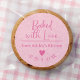 Baked with Love Pink Kraft Paper Elegant Script Classic Round Sticker