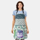 Baker at Work apron with teal stripes on the top with name that can be changed and the words "Baker at Work". The bottom of the apron has a blueberry cake, baking spoons and a bowl. Thanks to Creative Fabrica for some of the elements in the design.