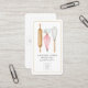 This whimsical cute watercolor cake bakery pastry chef business card features a baker's tools; rolling pin, piping bag and whisk. Simple tools of the trade! Your name signature in script typography and the name of your business, with the tagline: made with love. There is a space on the back for you to upload your logo. There is a space for your logo on the front.