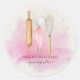 An elegant watercolor of baker's utensils product label, on a pink watercolor wash with a tiny spray of gold glitter stars and a deep silver pink typeface font contrasted with your name in a deep silver pink trendy stylish script. This design is perfect for a pastry chef, baker, dessert caterer or bakery food truck, If you are interested in other matching products with this design please contact me through the "message" link in my shop.