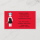 Baker with a Rolling Pin Business Card on Red. Perfect for a small business owner, consultant, freelance or anyone self employed. I’ve included text templates on the front and back that can easily be customized with your information, font and color preferences. If you need help or if you like what you see, but don’t see what you need, please contact me for a custom order. For your order and shipping issues, please contact Zazzle’s Customer Support via https://goo.gl/nCgptf