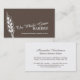 Simple modern blade, stalk, seed head of wheat graphic bakery / bakers business card in Dark brown and white. Perfect for artisan bakers, specialists bakery's and other cooking and baking professionals. Personalize with your company name, business services, address and contact details. Design and artwork by Sarah Trett.