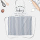Make this beautiful apron your own by adding your own name, family name or company name, as well as two more personalized ares for your text.Design with gorgeous "Bakery" script in hand written calligraphy and white and blue stripe pattern. Great custom gift idea!
