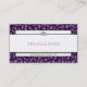 Promote your cafe cupcake bakery business with this bold purple, black and white modern and stylish monogram leopard print and diamonds business card. This business card features a jagged leopard (animal) print background with a circle frame with a monogram letter inside. The design has layered rectangles displaying your business information. This bold, modern, and stylish business card is also a great match for caterers, cafes, bakeries, cupcake businesses, party planners, bakers, chefs, business providing baked goods to retailers, wedding planners, interior designers, fashion designers, spas, salons, nail technicians, manicurists, estheticians, beauticians, retail clothing stores, jewellery stores, and more. ©2011 Pam's Designs.